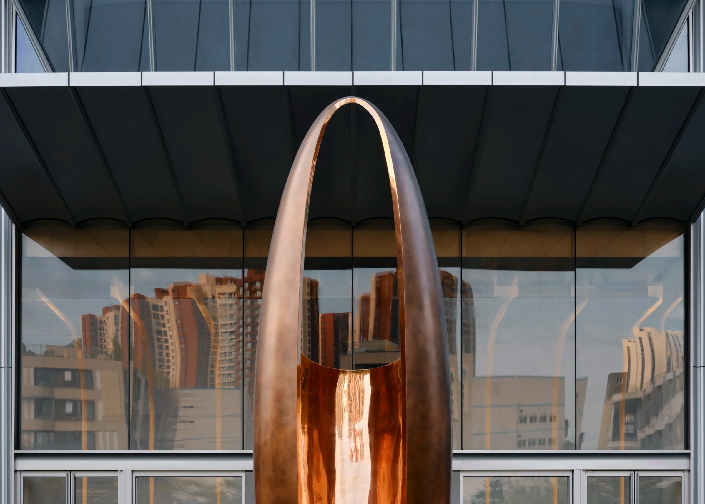 Vessel, a six-metre bronze sculpture, echoes both an ancient container and the cross-section of a grain, whose husk protects the precious seed within. It honours those vessels integral to Snow Beer's existence, from grain, to store, to glass.
